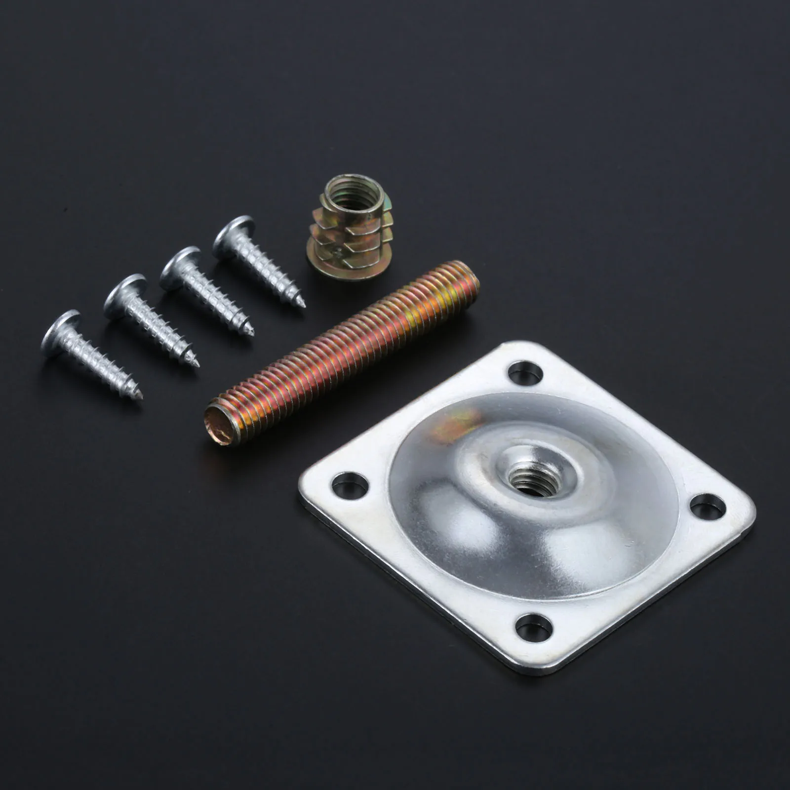 Offer Description of Iron 48x48mm Soft Table Chair Feet Attachment Plates Silver Color Furniture Leg Mounting Plates with Hanger Bolts Adapters